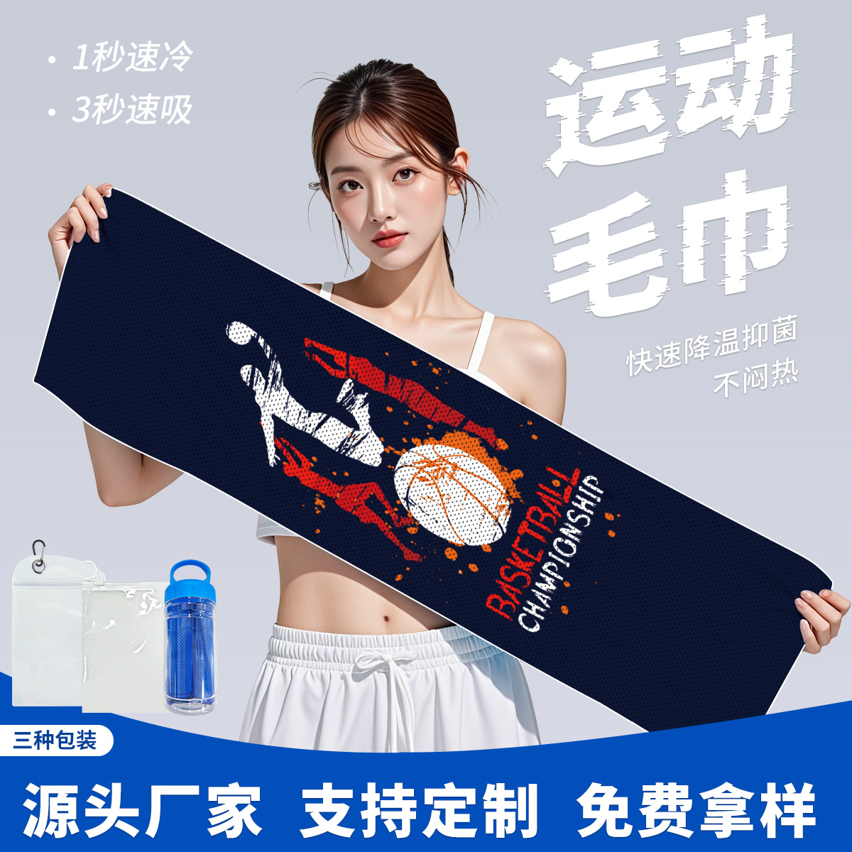 冷感スポーツタオル速乾ジム汗タオルランニング男女携帯バスケットボール腕タオル