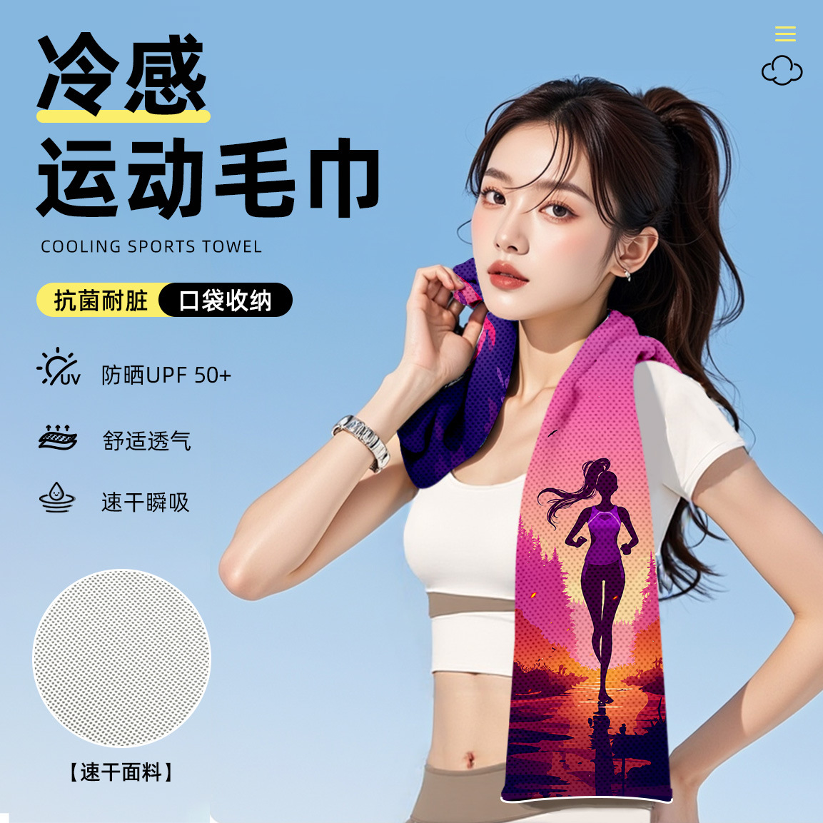 冷感スポーツタオル吸汗ジム女性速乾汗タオルランニングバドミントン専用涼感携帯タオル