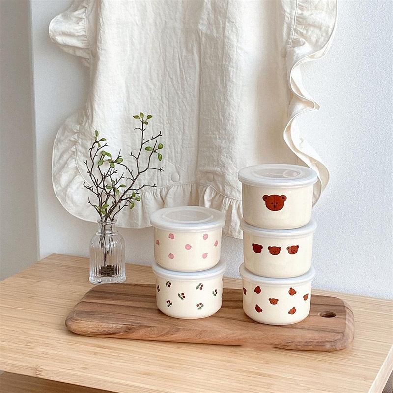 Ins韓風かわいいプリント子供陶磁器ボウル漫画ベアー赤ちゃん補助ボウル目盛り付きシール食器