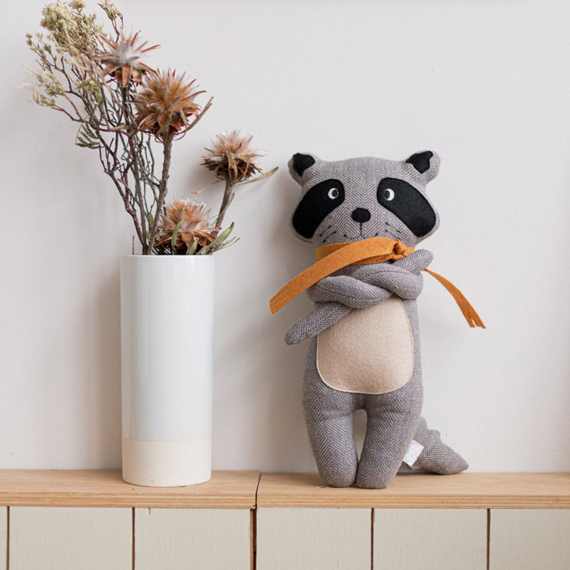 子供のおもちゃのアライグマの子供の布芸は人形の装飾をなだめます。