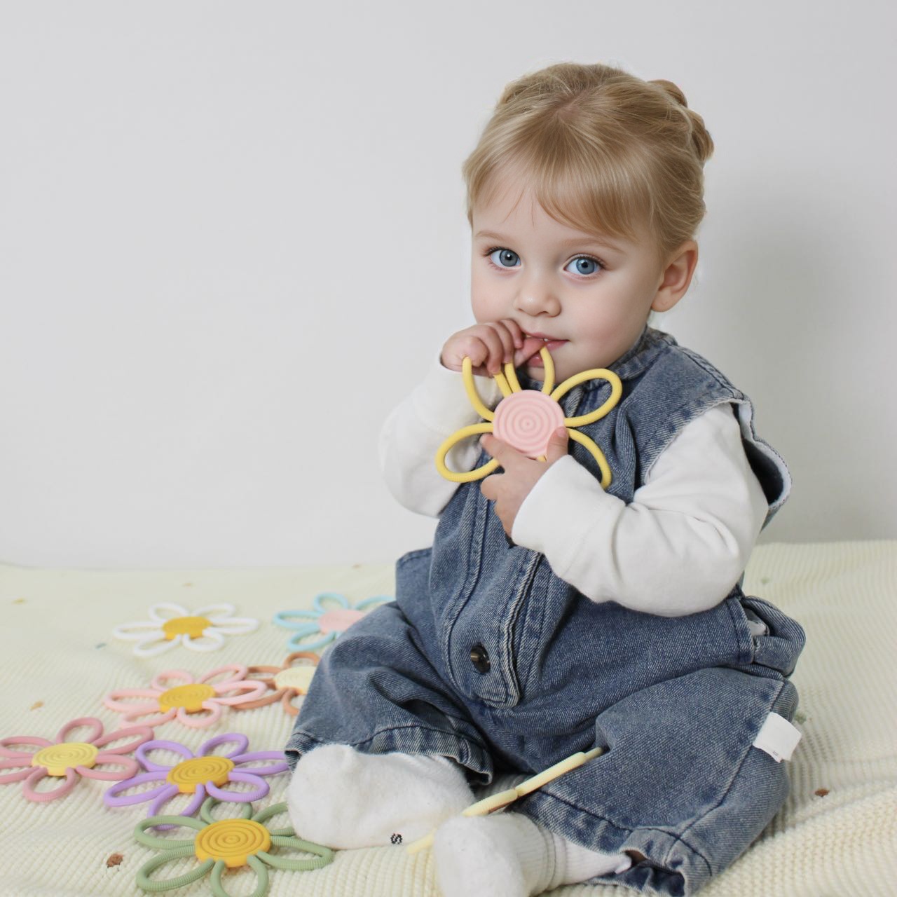 越境乳幼児の花のシリカゲルの歯のゴムの小さい清新な赤ちゃんの歯を磨く棒は歯のゴムの子供の太陽の花の歯をなだめます。