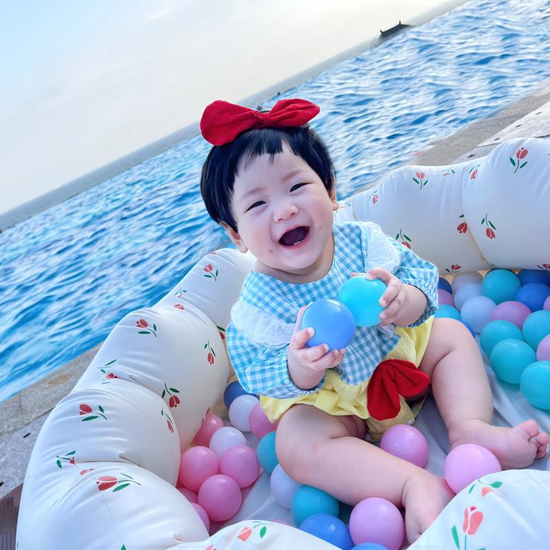 Insは空気入れの花びらの浴槽を持っています。子供のゲーム風呂は折り畳み可能です。pvcオリーブの熊プールです。