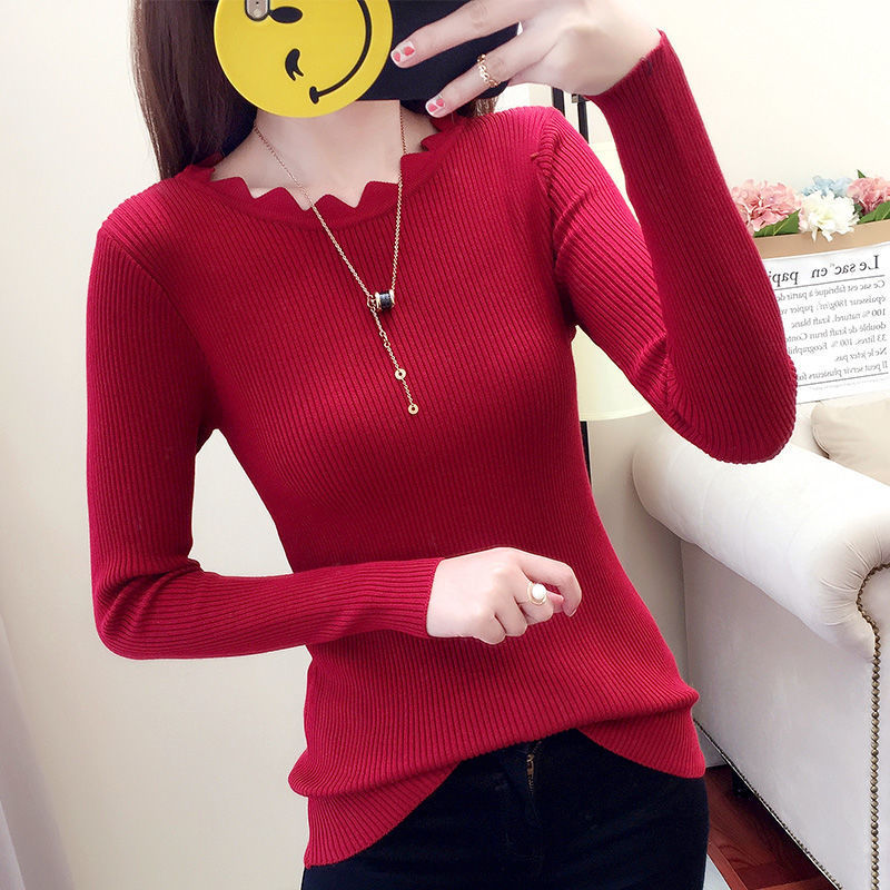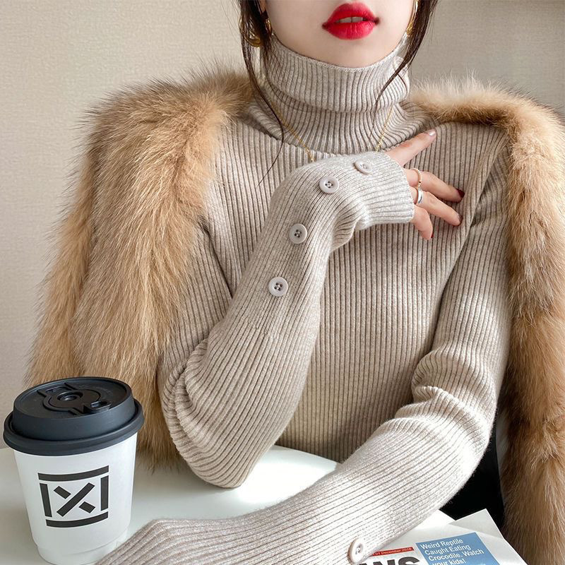 半高襟の木の耳元のニットの女性の秋冬の新型の底のセーターを打って身を修めてやせている長袖の中でプルオーバーの上着を掛けます。