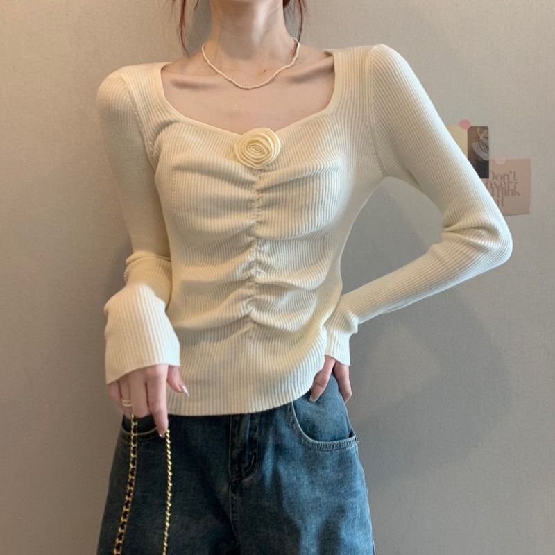 秋冬の韓国版のデザイン感のある花のニットの女性の甘い大衆の修身はやせている内に長袖の気質の上着を掛けます。