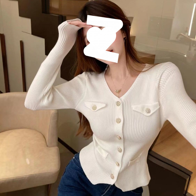 2024春と秋の新型デザイン感のあるvネック長袖ニットカーディガンの女性のスリムなショートコートの上着