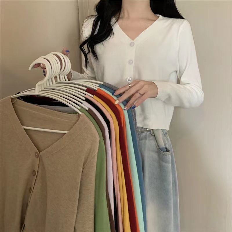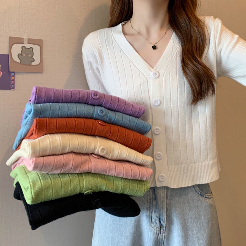 春と秋の新商品の純欲上着の薄い韓国版のデザイン感の短いニットのカーディガンの女性vネックの長袖のセーターのコート