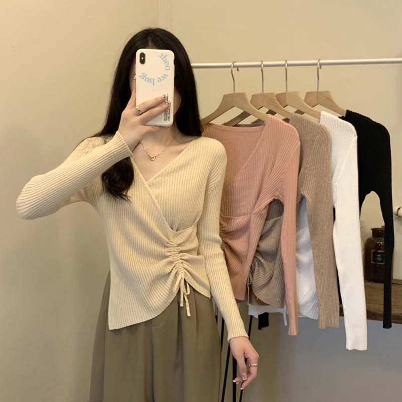秋冬の新型純欲vネック長袖ニットの底のセーターの女性の中にデザイン感があります。