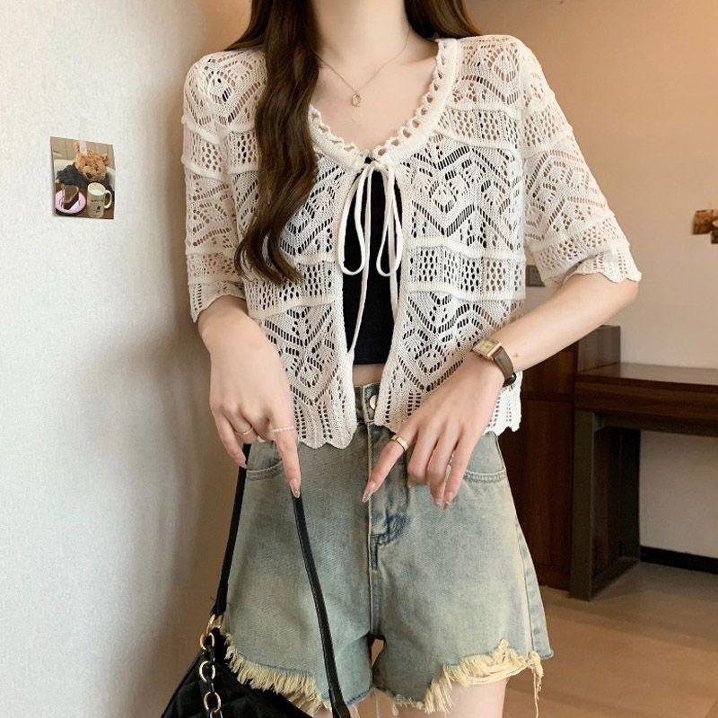 白の短いニットのカーディガンの女性の春と秋の新型の洋気の中に底のセーターの外に長袖のコートを掛けます。