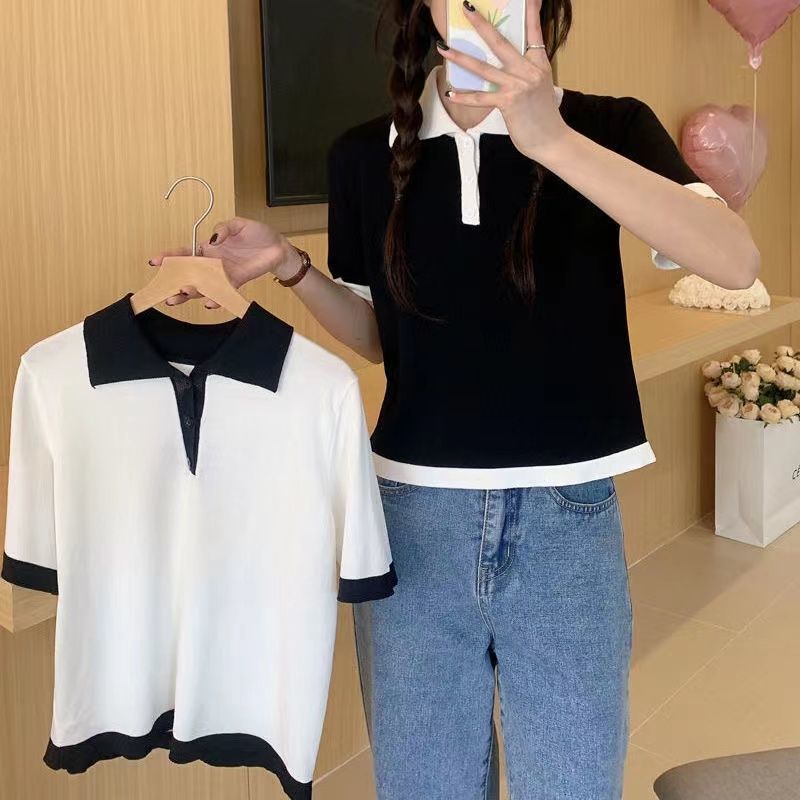 学院風夏の新型ニット半袖アイスtシャツ女性poloシャツのデザイン感が小さいです。