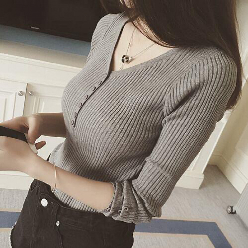 高級感のある素敵なセーターの女性春と秋の新しい白い修身の中にニットの上着のユニークなシャツを着ます。