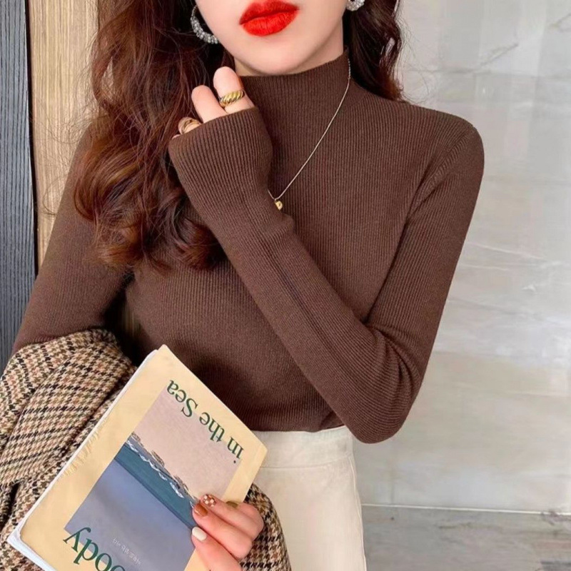 半高襟の底のシャツの女性の秋冬の新型の洋気の中で長袖のセーターを掛けて身を修めるのはやせています。