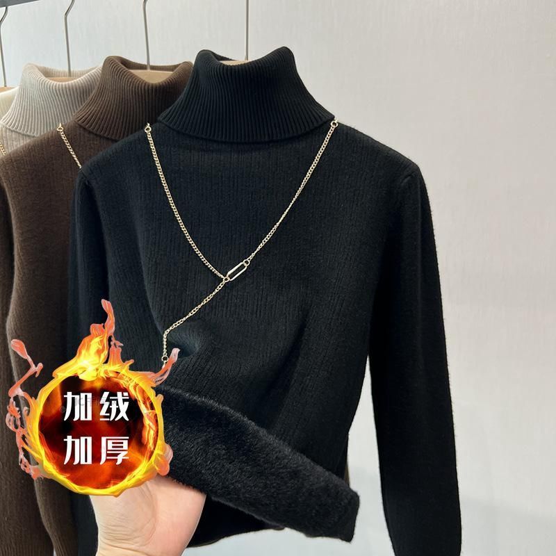 2024秋冬の新型のベルベットの高襟とベルベットの厚いセーターの女性の中に保温上着を着てシャツの潮を編む