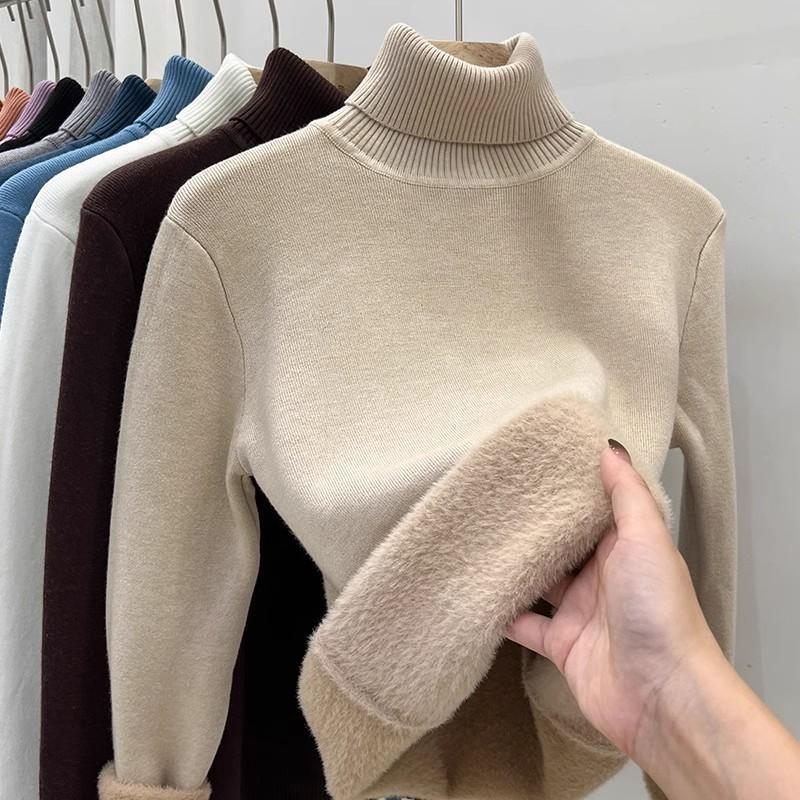 タートルネックのセーターの女性とベルベットが厚くなった2024秋冬の新型ミンクのベルベットの中に上着のシャツの女性の冬の厚さがついている