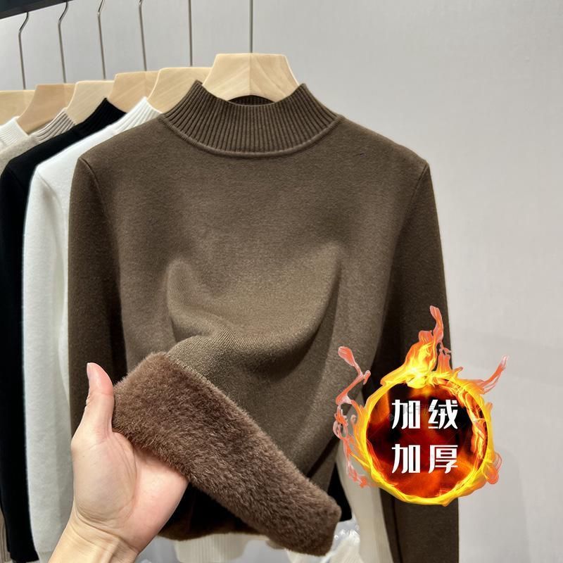 半高襟長袖セーター女2024秋冬の新商品の中に、底のシャツとベルベットを着て、暖かい空気の上着を厚くします。