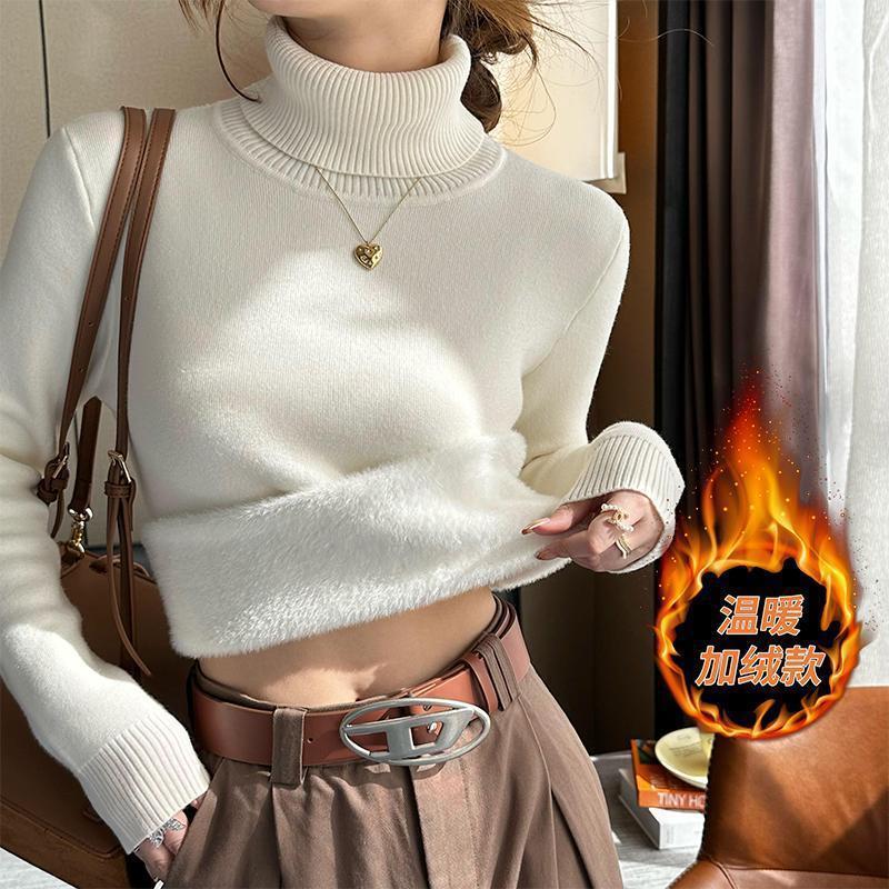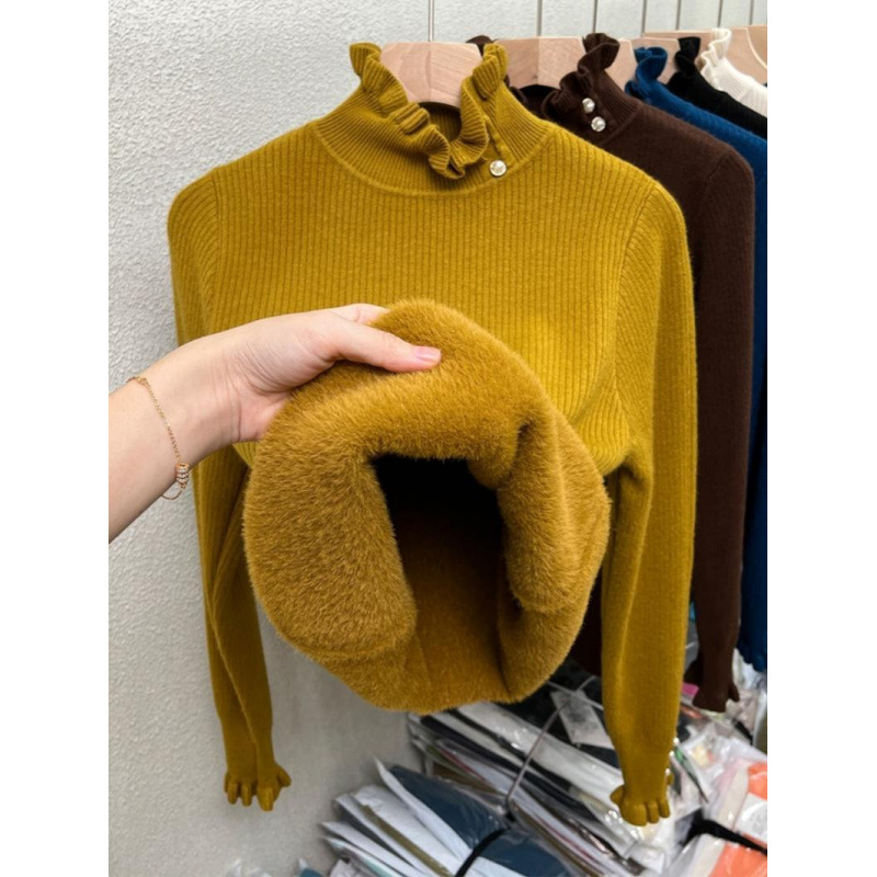 タートルネックのセーターの女性とベルベットが厚くなった2024秋冬の新型ミンクのベルベットの中に上着のシャツの女性の冬の厚さがついている