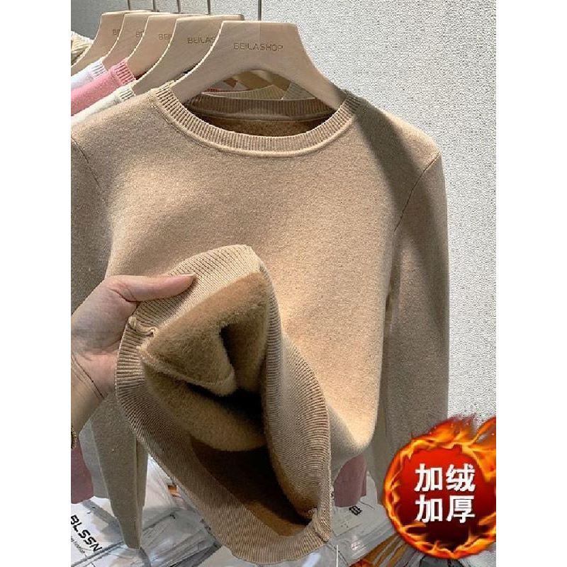丸首一体のベルベットセーターの女性2024秋冬の新しいニットの保温上着とベルベットの厚いインナーシャツ