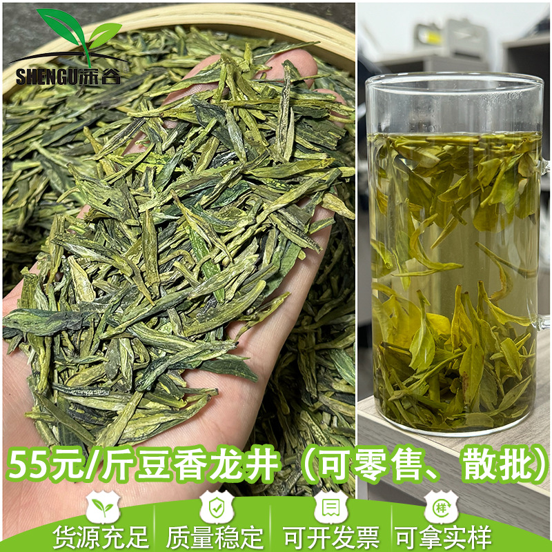 2025 新茶低価格小芽龍井緑茶葉電子商取引バルク卸売高豆の香り豊かで耐性のある泡の色緑