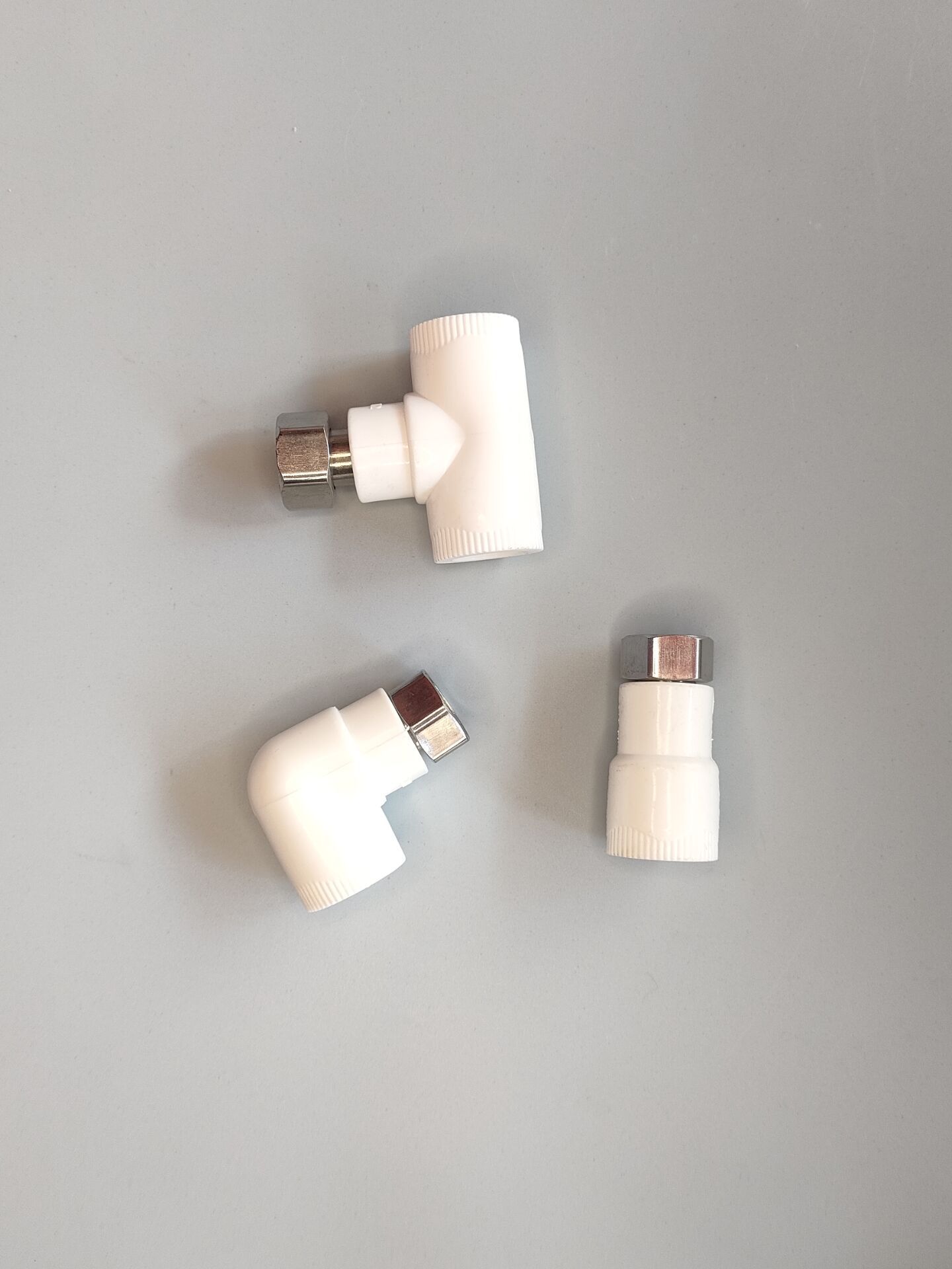 水道管アルミパイプ継手プラスチック継手等径エルボ内歯外歯直通三方4分白色