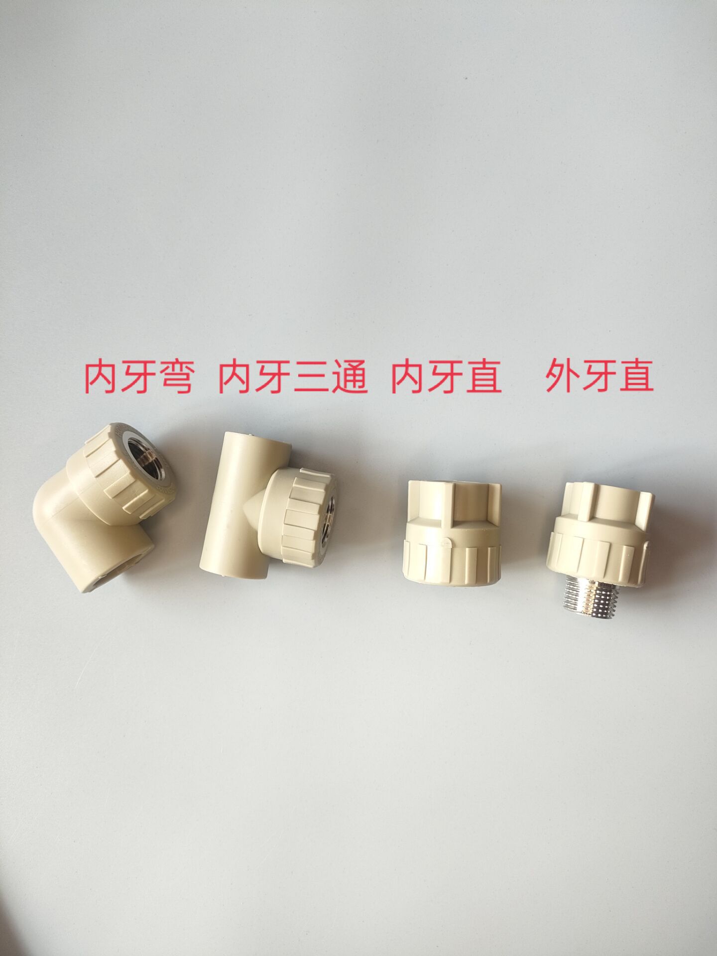 Ppr管の部品の灰色の内歯のまっすぐな内歯の曲がった内歯の三方の外歯のまっすぐな20 25 32給水の熱融着
