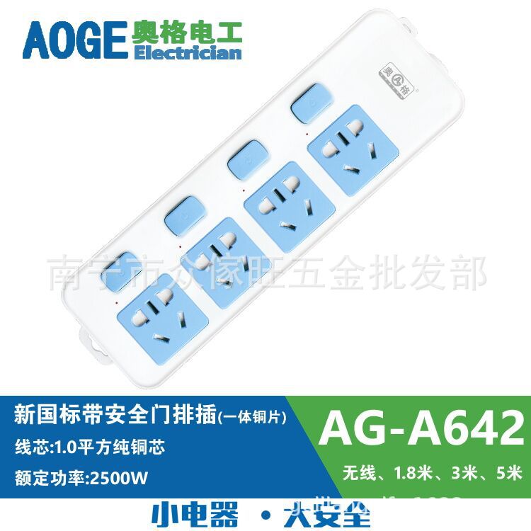 奥格A638-40穴1.8メートル3メートル5メートルスイッチ付き電源コンセント配線板銅線コンセント