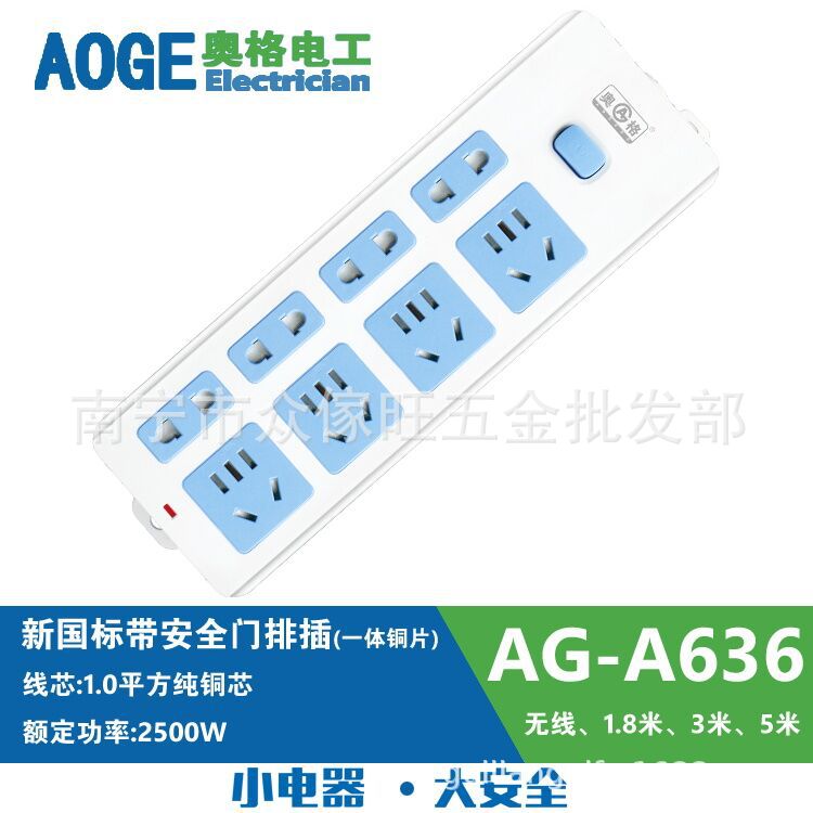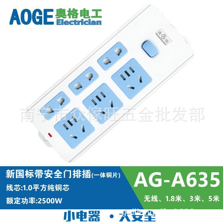 奥格a 634 20穴1.8メートル3メートル5メートルスイッチ付き電源コンセント接続板銅線コンセント