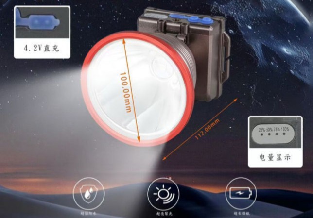 ヘッドライト白色光充電ヘッド式照明灯屋外家庭用遠射懐中電灯1288