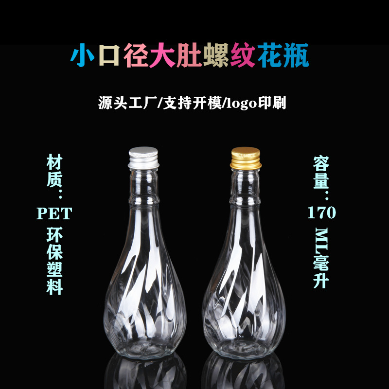 新品180ml小口径大腹スレッドフラワーボトル透明petプラスチックボトル水耕栽培植物装飾容器