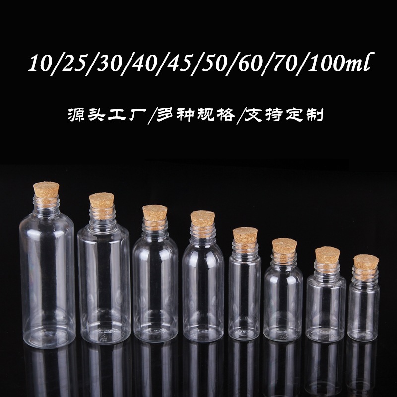 クロスボーダー専用10/25/30/50/60/70/100ml透明petペットボトル木栓分注瓶香水瓶