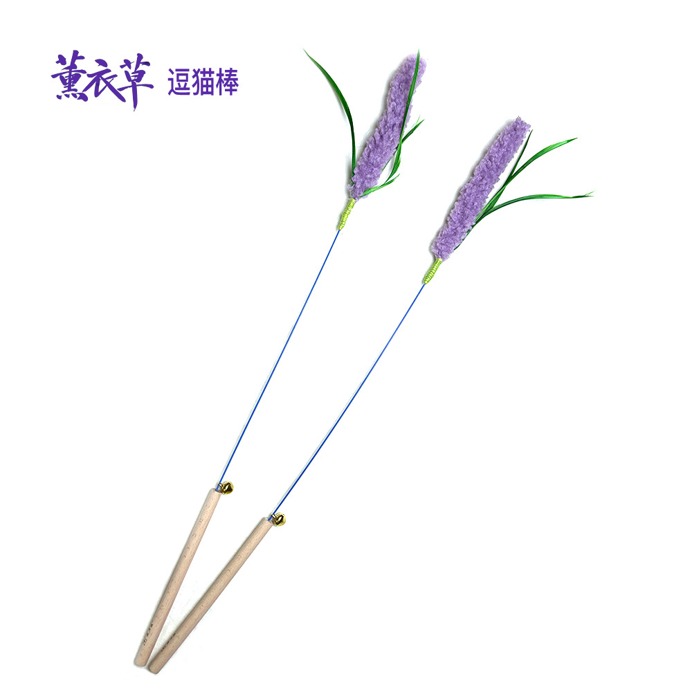 ラベンダーの猫の棒の長い竿は猫のおもちゃをかむことに耐えます。