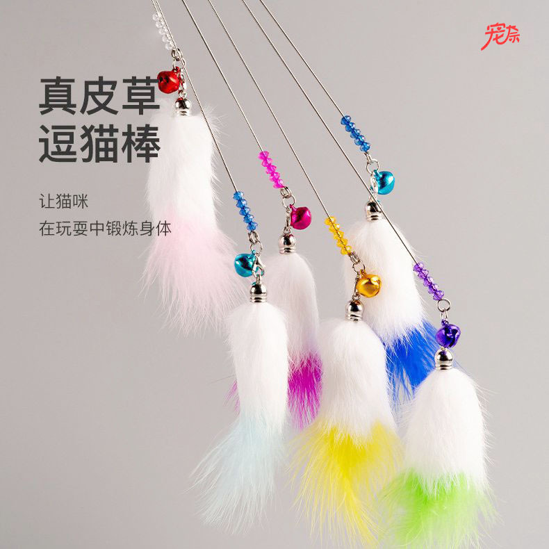 工場卸売猫のおもちゃロングロッド鋼線猫面白いスティックアサリ猫面白いロッド交換ヘッドインタラクティブ自己楽しみ耐性のある咬傷