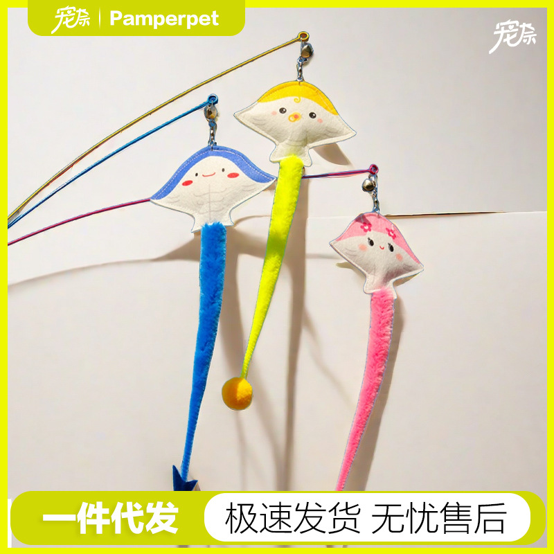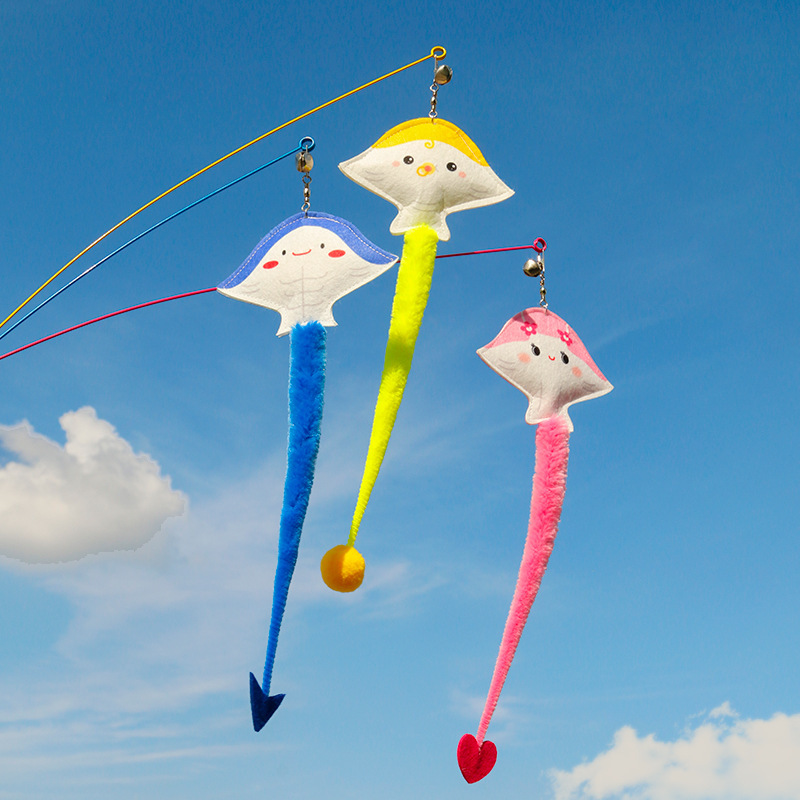 オリジナル海洋魚魔鬼魚鋼線の長い棒が猫の棒をからかっています。