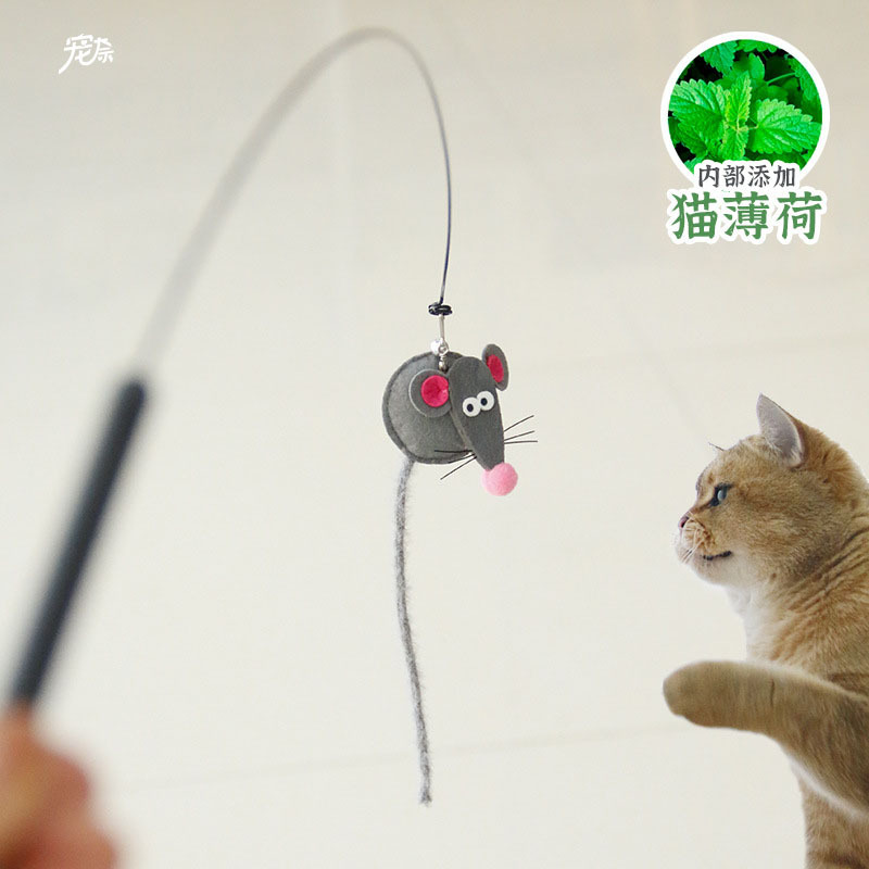 新商品オリジナルの灰色のネズミが猫の棒をからかっています。