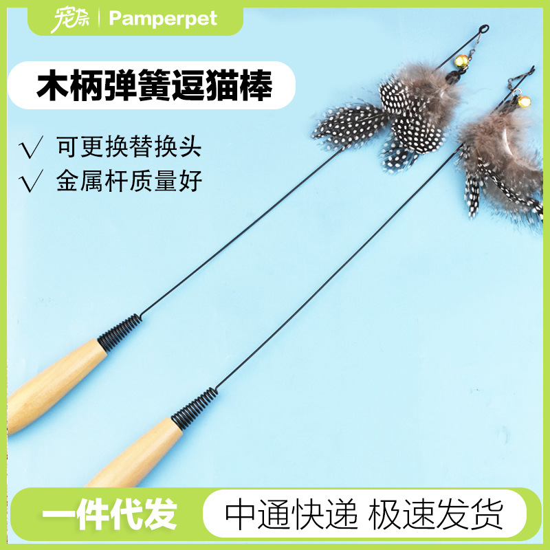 ネット赤cfa試合級木柄スプリング猫棒猫のインタラクティブなおもちゃは羽の鈴の頭に取って代わることができます。