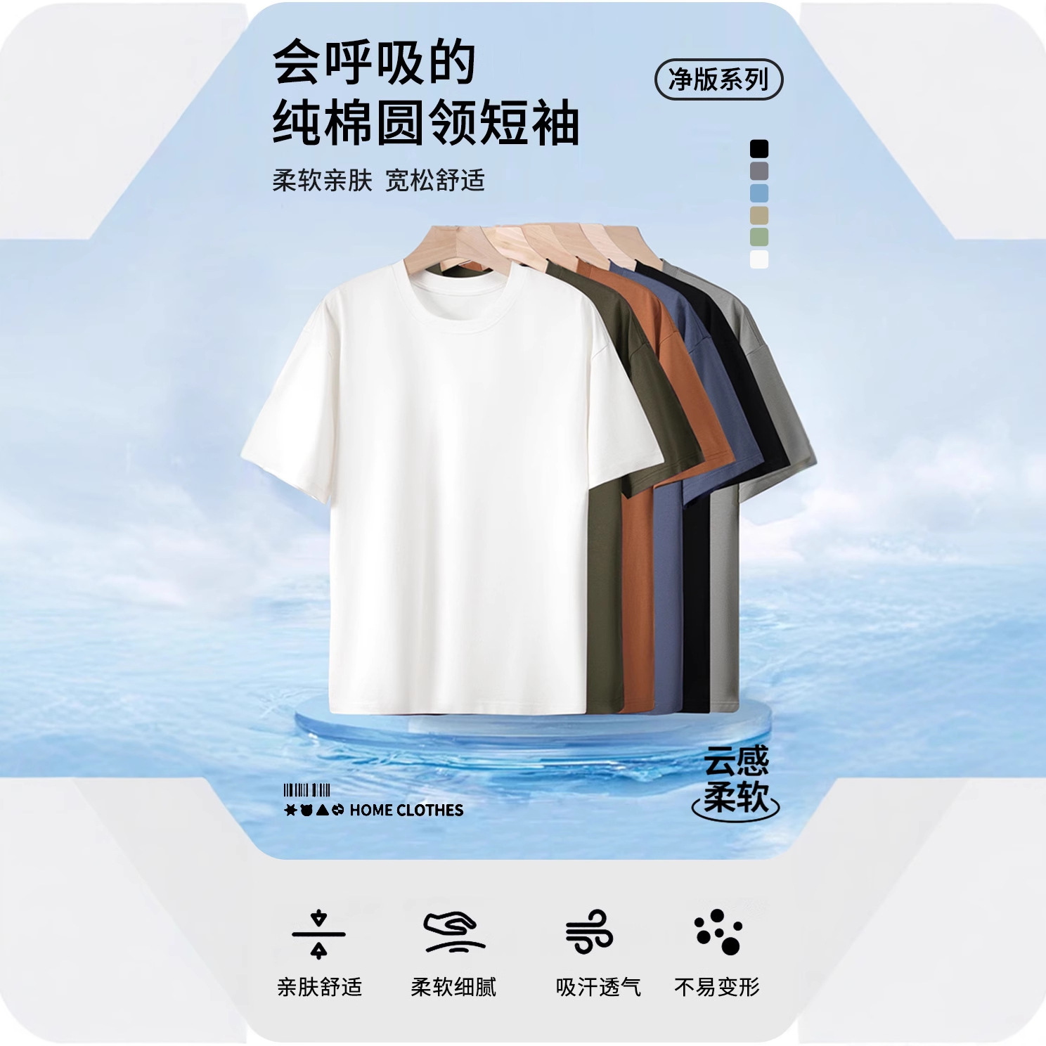 夏の綿180g半袖純色tシャツ男女学生2025新型韓国版ゆるい香港風上着