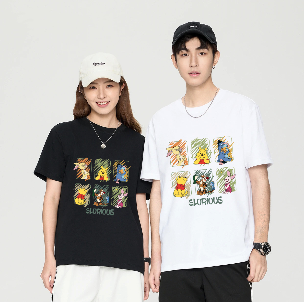 夏の香港風の氷の糸の半袖のtシャツの男女は同じです。