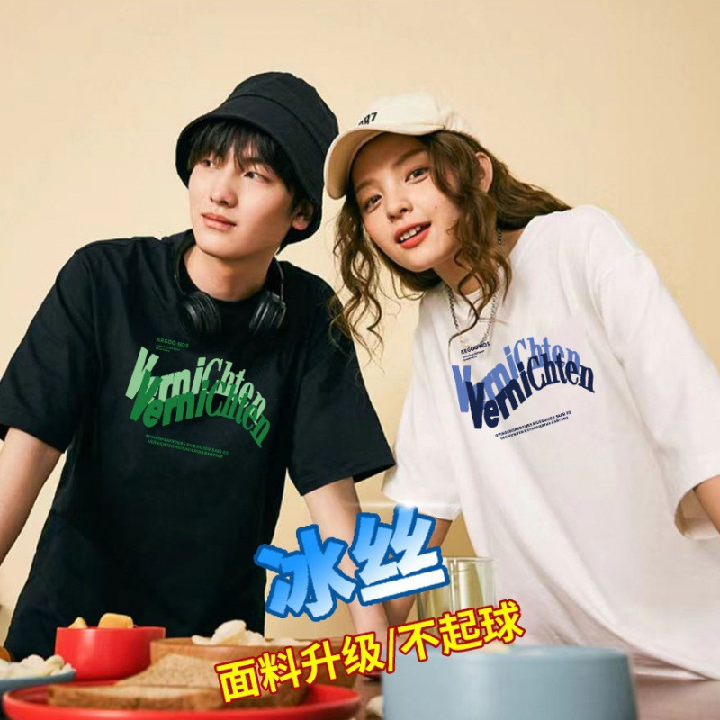 夏の新型氷糸半袖tシャツ男2025香港風カップルのクールな上着はゆったりとした通気性が快適なT