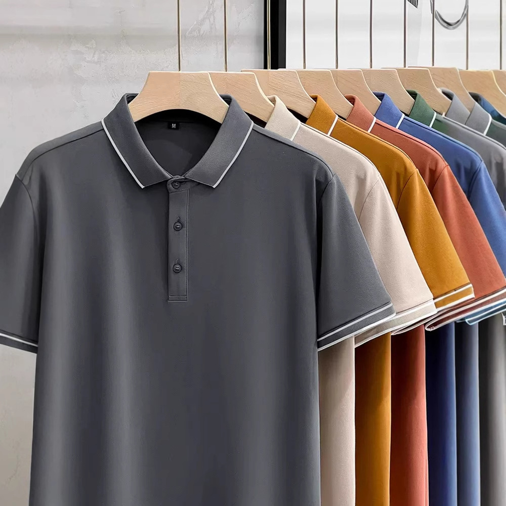 クロスボーダーメンズポロシャツシンプルファッション折り襟アイス無地ポロシャツ夏襟付きハーフスリーブtシャツ