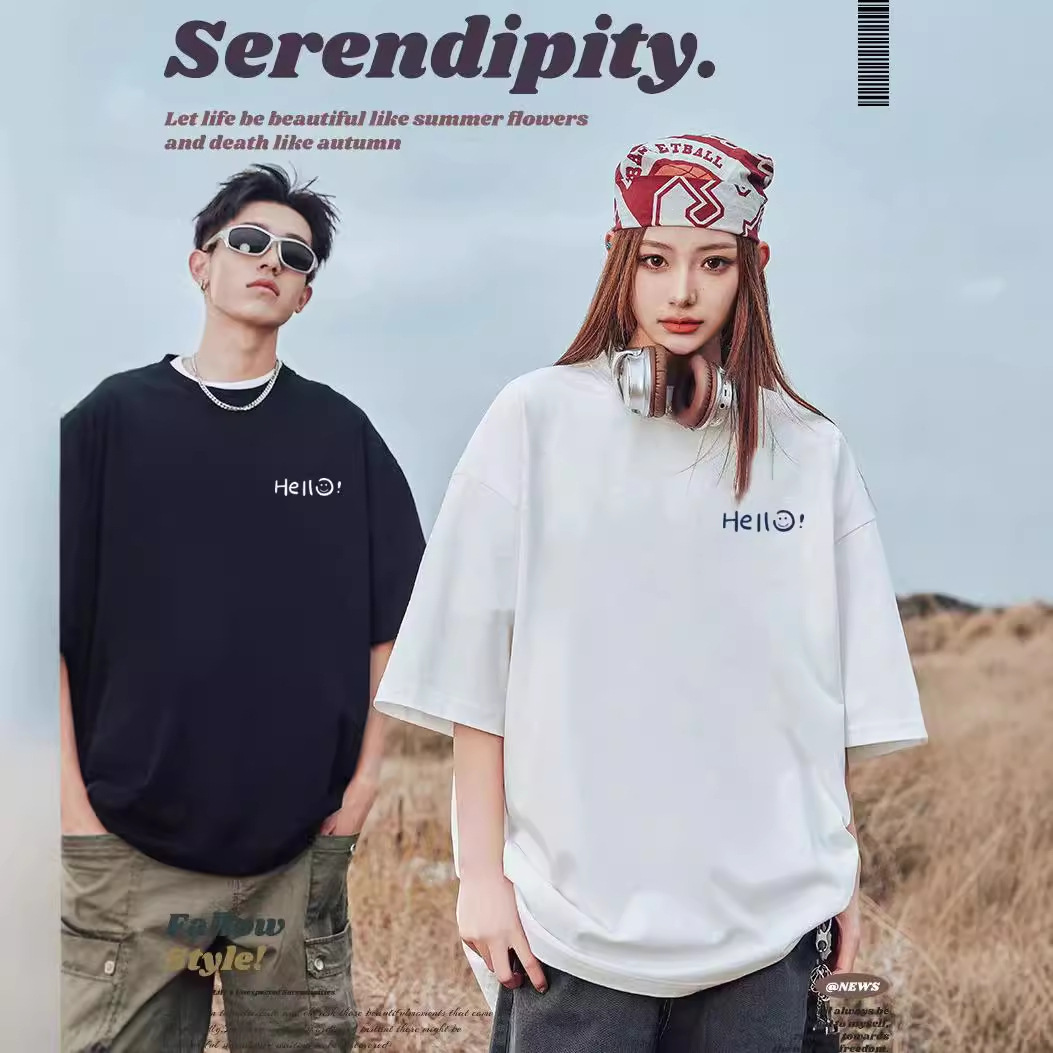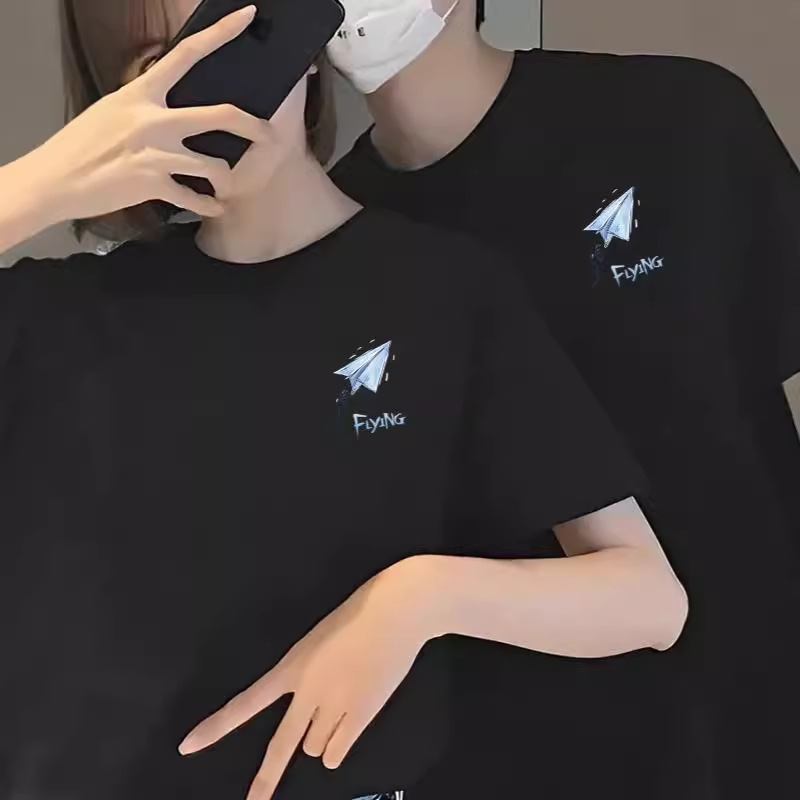 代唯男装ファッションカップルの香港風氷糸涼感半袖tシャツ2024男ゆるい半袖露店服