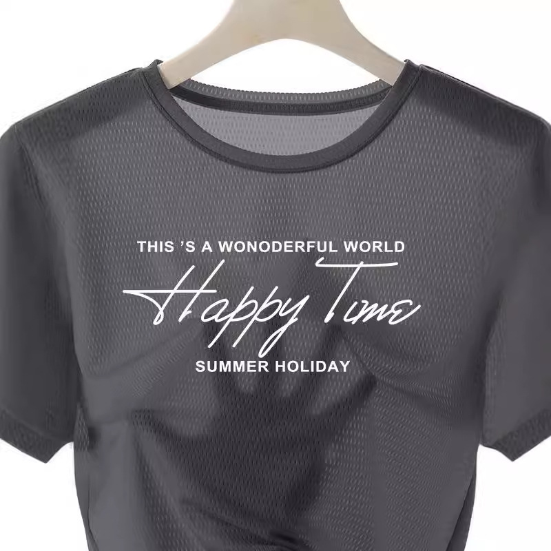 2025年アイスシルクメッシュTシャツ メンズ 多用途プリント 薄手 夏用 丸首シャツ 速乾性 通気性 スポーツ メンズ半袖Tシャツ