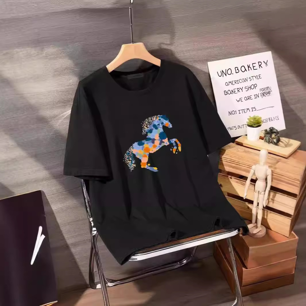 2025 アイスシルク香港スタイルメンズ Tシャツ多用途シンプルトップカップル着用男性と女性の同じスタイル半袖トレンディなボトリングシャツ