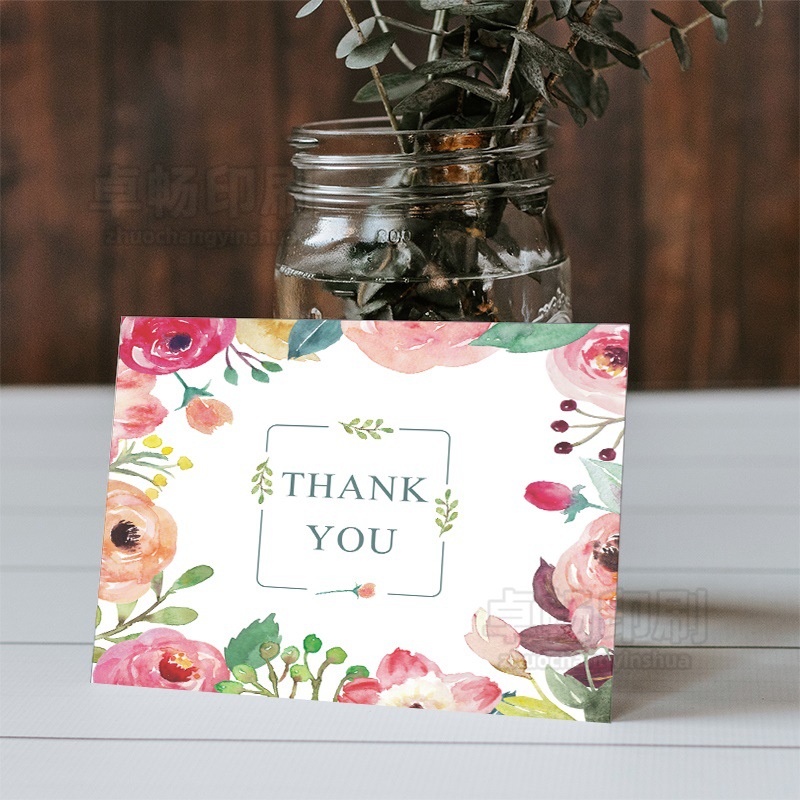 手描き水彩ロマンチックな花カードメッセージ感謝状ギフト小包券美しい対外貿易評価券説明書