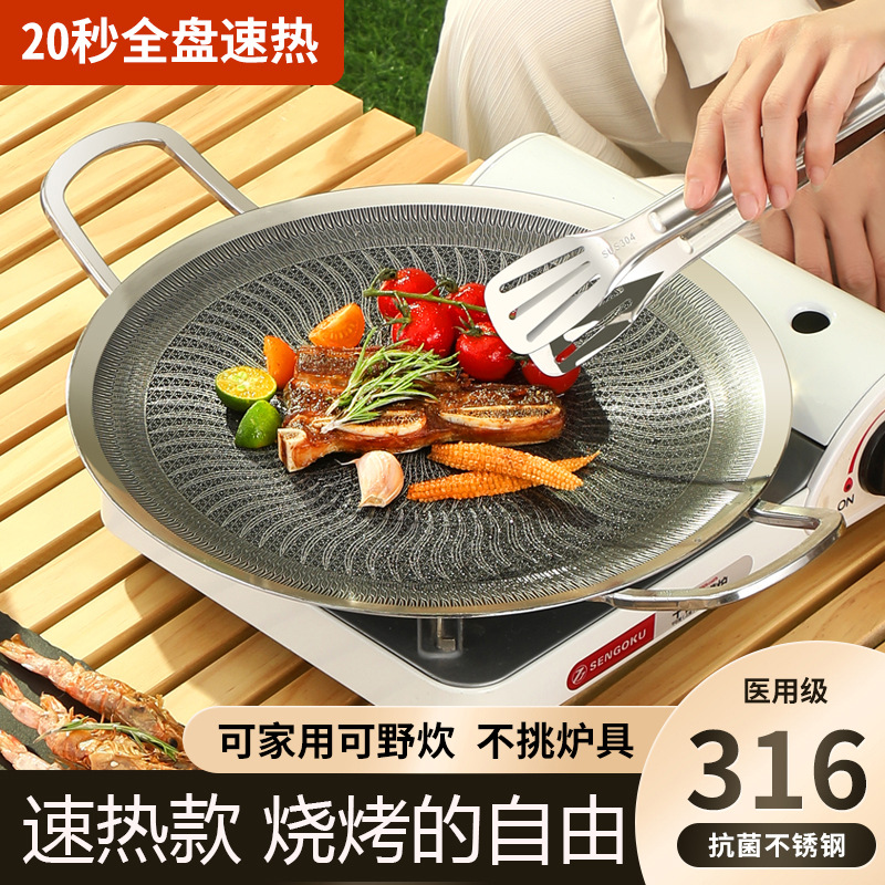屋外串グリルパン、急速加熱ノンスティック鉄板焼き、多機能ポータブルバーベキュープレート、カーボングリルバーベキューカセットコンロ