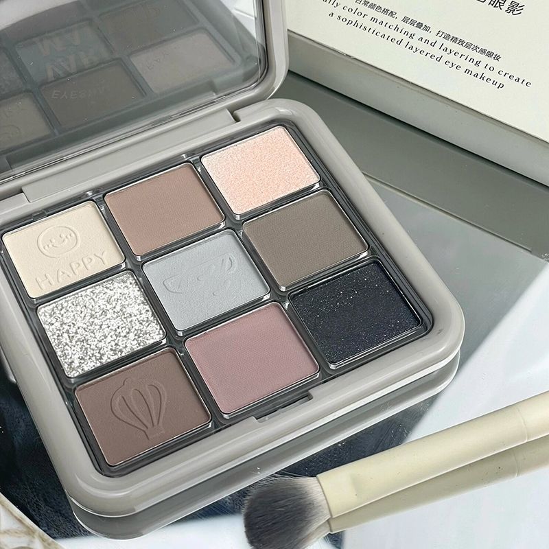 韓系古早小スモーク12色アイシャドー盤低飽和冷調グレー茶色唖珠光セメント大地色平価