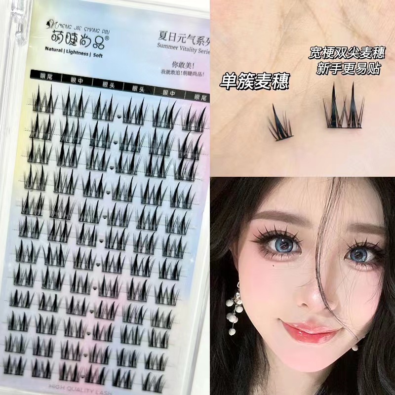 萌えまつげ尚品双先麦穂偽まつげ怠け者三部曲単クラスタ漫画セグメント式自然細茎まつげ