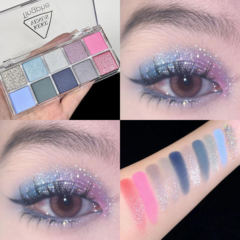 2024年新商品アイシャドー十色ブルー水銀薔薇珠光マット大地亮晶ins平価学生