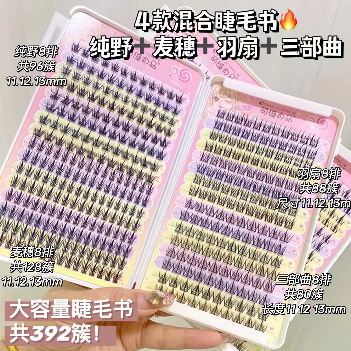 V型下まつげ + 怠け者三部曲 + 純野小悪魔 + 麦穂セット大容量混合まつげ本