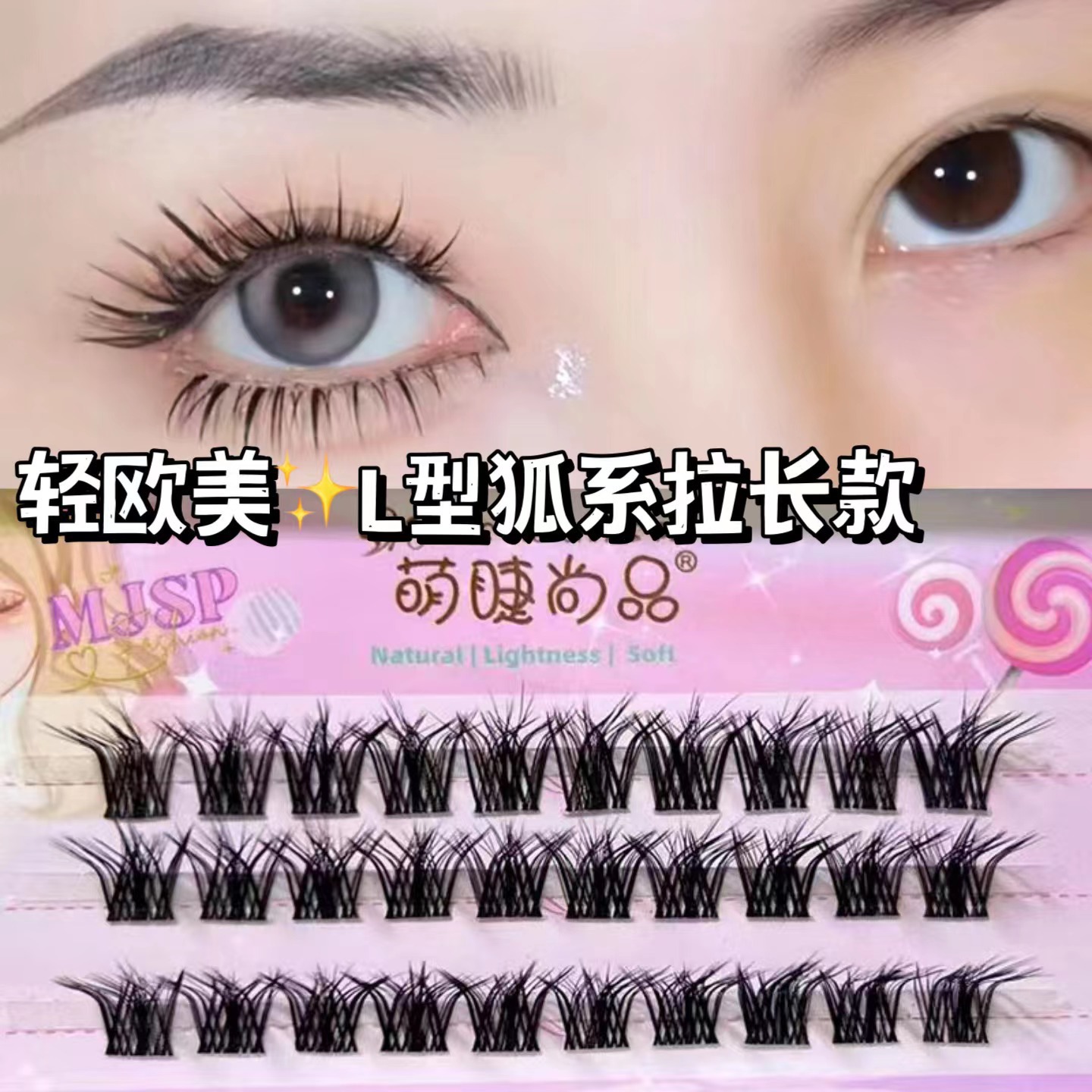 萌えまつげ尚品l型狐系拉長型純野欧米風偽まつげ混装自然型濃密なまつげ