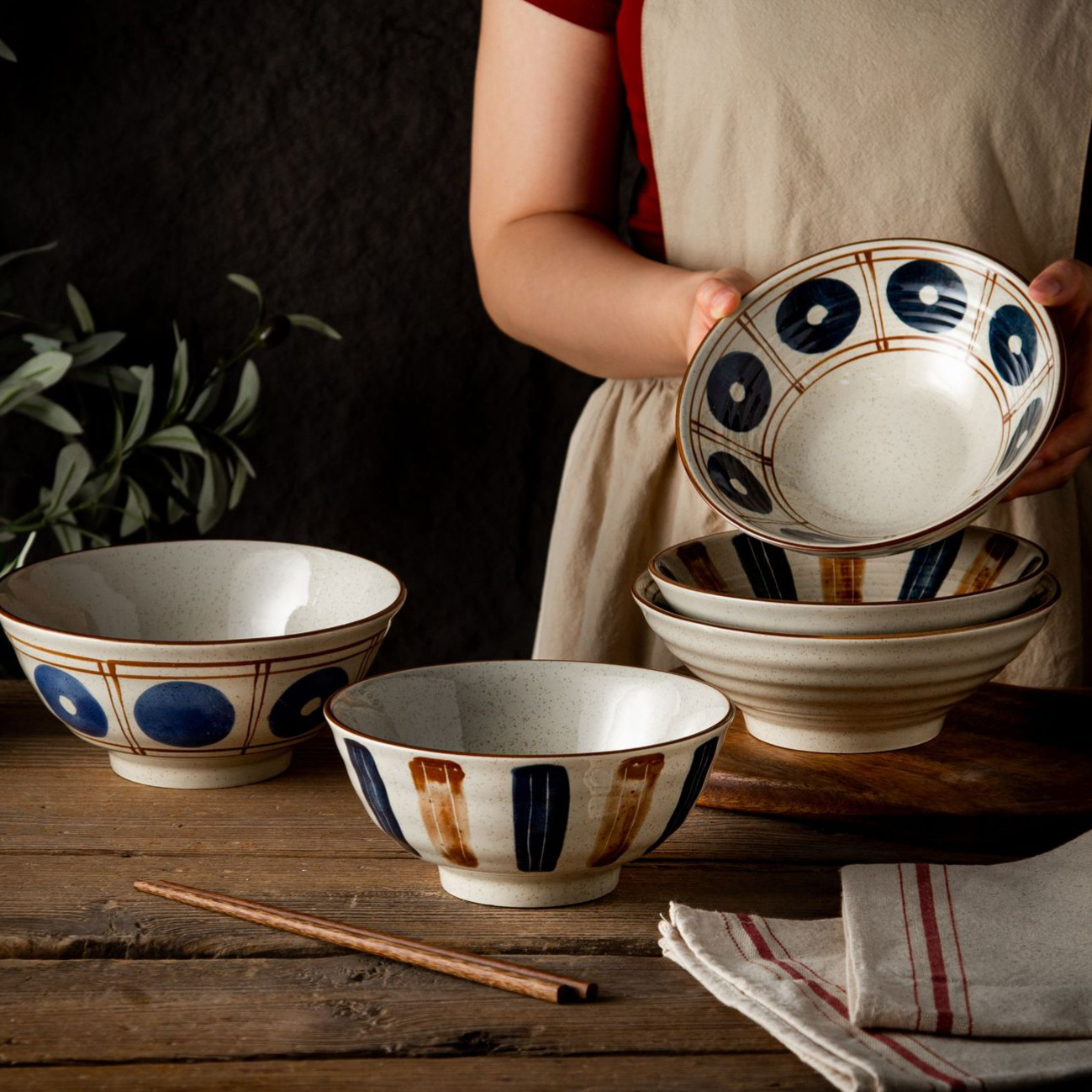 和風食器、見栄えの良い陶器のボウル、インスタントラーメンボウル、家庭用食器セット、ボウル、個人用ボウル、食器