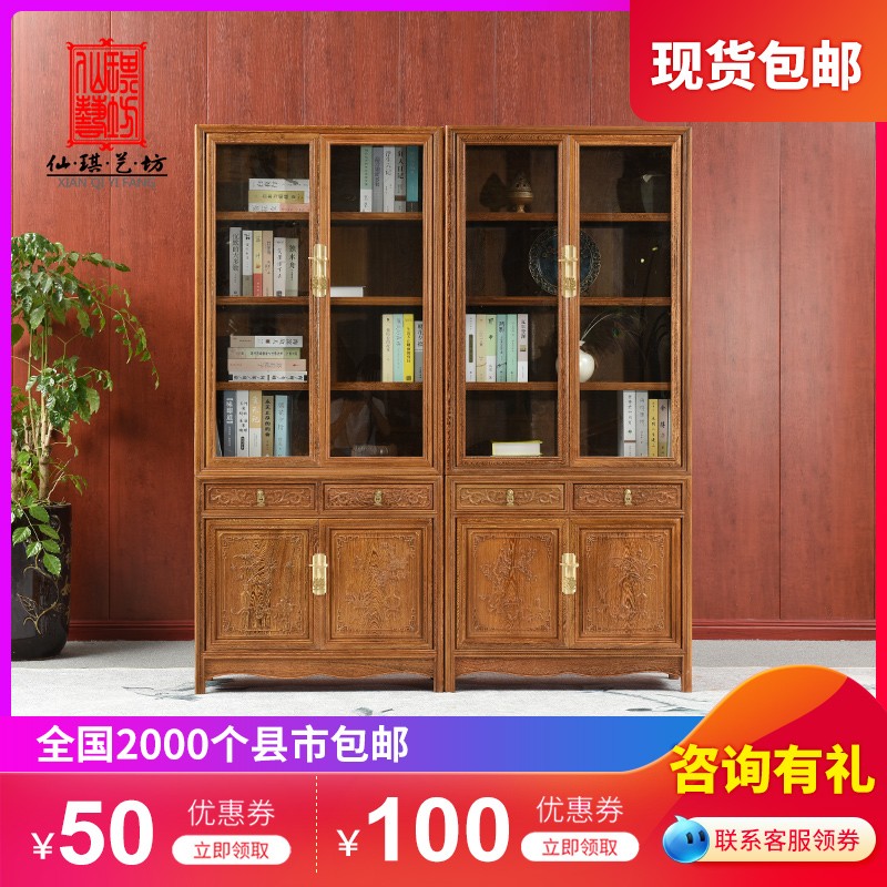 3e赤木家具手羽木書斎本棚ドア付き模造中国式実木本棚自由組み合わせガラス