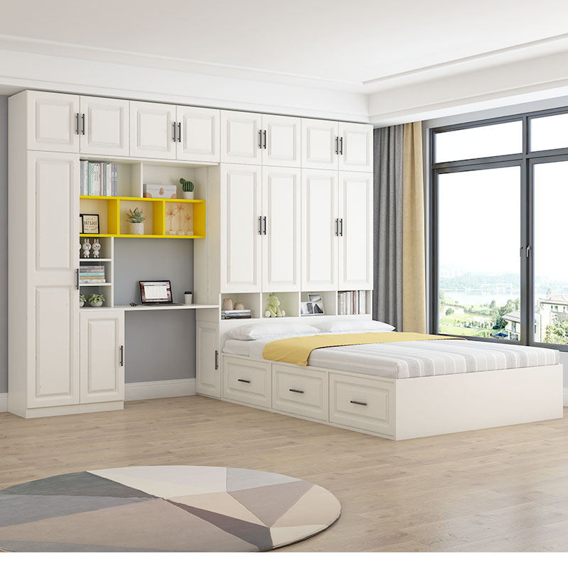 3e畳ベッドたんす一体シンプル寝室机付きベッド戸棚セット小戸型収納ベッド実木たんす
